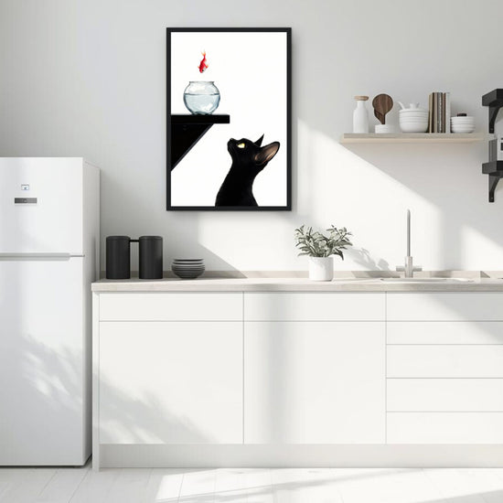 The playful interaction creates a charming narrative that adds character and fun to any space. Perfect for cat lovers, modern home enthusiasts, and anyone who appreciates clean, contemporary design with a touch of humor.
