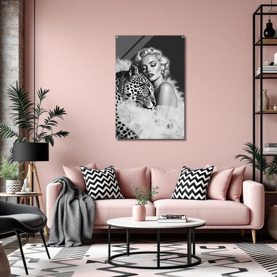Fall in love with our black and white Marilyn Monroe leopard art print, because who needs diamonds when you can snuggle with a leopard who's already wearing them? Fall in love with our elegant pair of old Hollywood glam and true vintage charm. If starlets and models can own diamond-clad, well-trained leopards, why can't you? :)